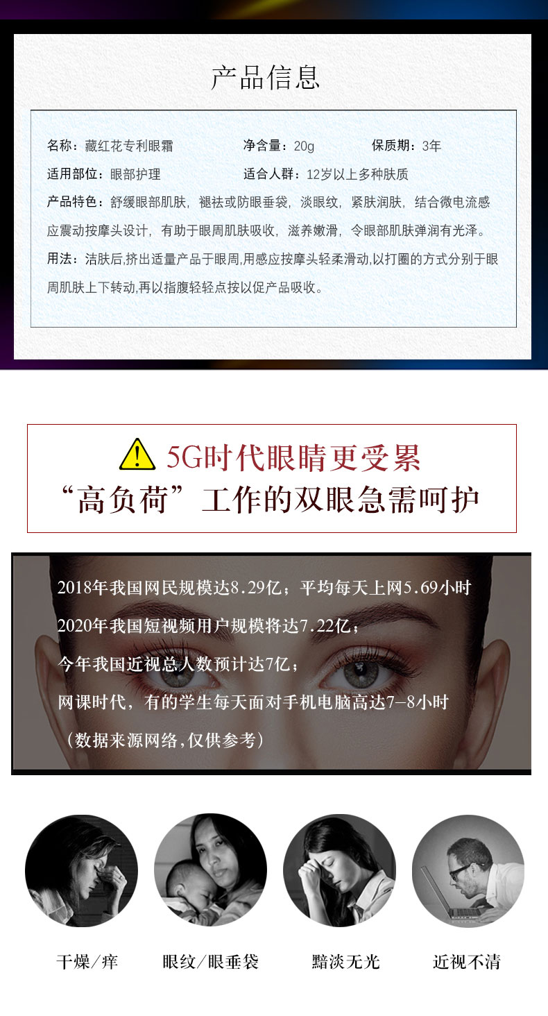 產品特色:舒緩眼部肌膚,褪祛或防眼垂袋,淡眼紋,緊膚潤膚,結合微電流感應震動按摩頭設計,有助于眼周肌膚吸收,滋養(yǎng)嫩滑,令眼部肌膚彈潤有光澤。